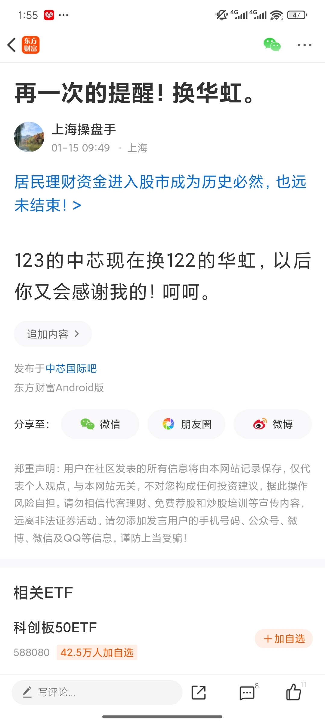 温馨提示: 1.根据《证券法》规定,禁止编造、传播虚假信息或者误导性信息,扰乱证券市场;2.用户在本社区发表的所有资料、言论等仅代表个人观点,与本网站立场无关,不对您构成任何投资建议。用户应基于自己的独立判断,自行决定证券投资并承担相应风险。《东方财富社区管理规定》