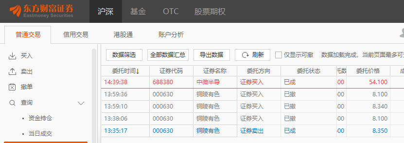 短线仓位,卖掉了一部分 铜陵有色,换成了 中微半导