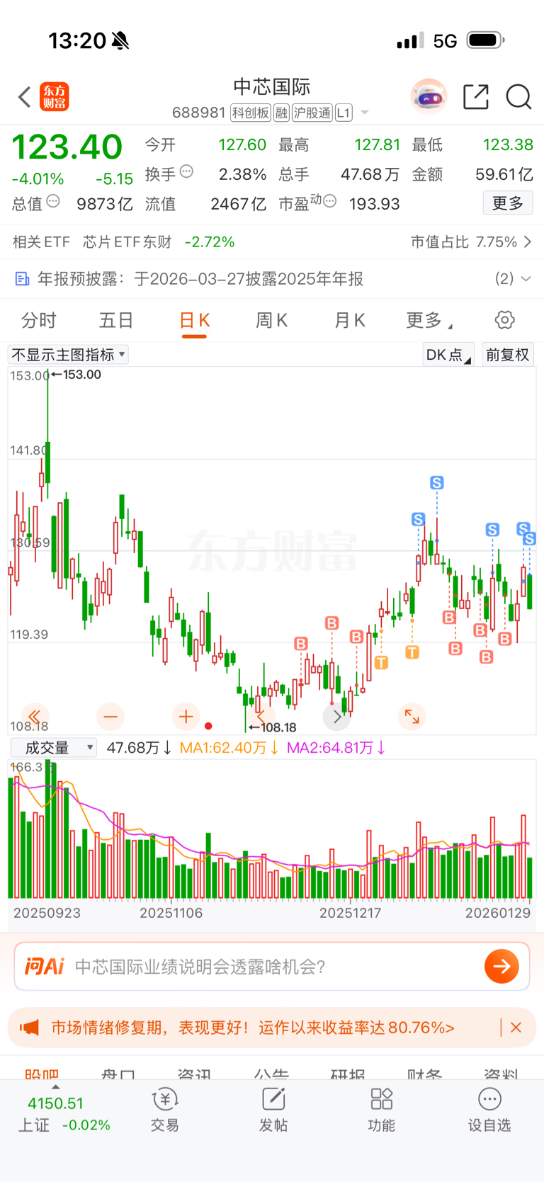 $中芯国际(SH688981)$ 这个股远远跑不过华虹的最主要原因根本就不是因为压盘,不让涨。可以去大模型问问,中芯虽然给很多国产ai芯片厂代工芯片,但他的主营实际上代工消费电子(手机电脑汽车)相关的芯片。这些行业由于大宗商品 存储芯片的涨价,2026年度出货量预期将会明显减少。而华虹的主营是代工ai服务器相关的芯片,所以收益大的多。了解晚了,这笔投资属于非常失败的。
