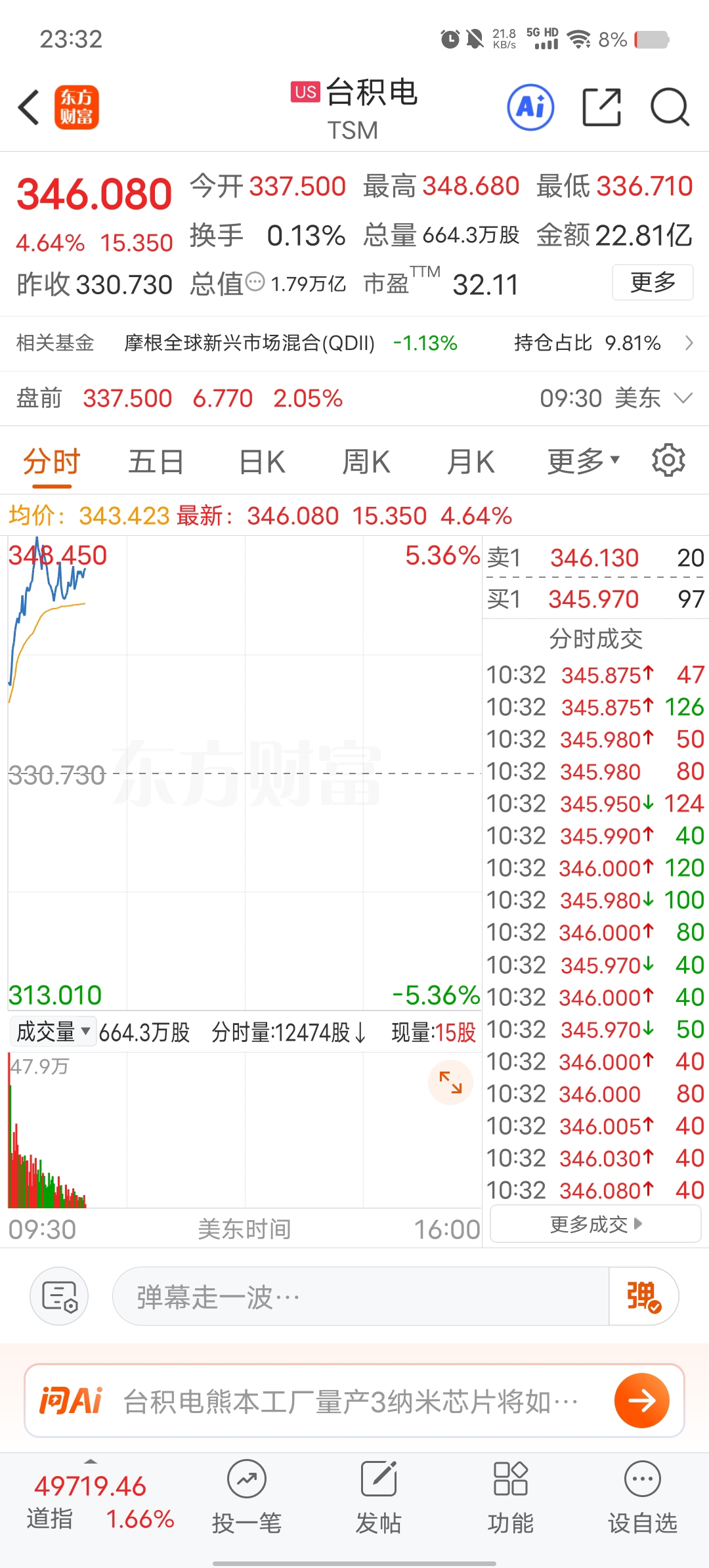 $中芯国际(SH688981)$ 台积电今晚估计又要破新高了