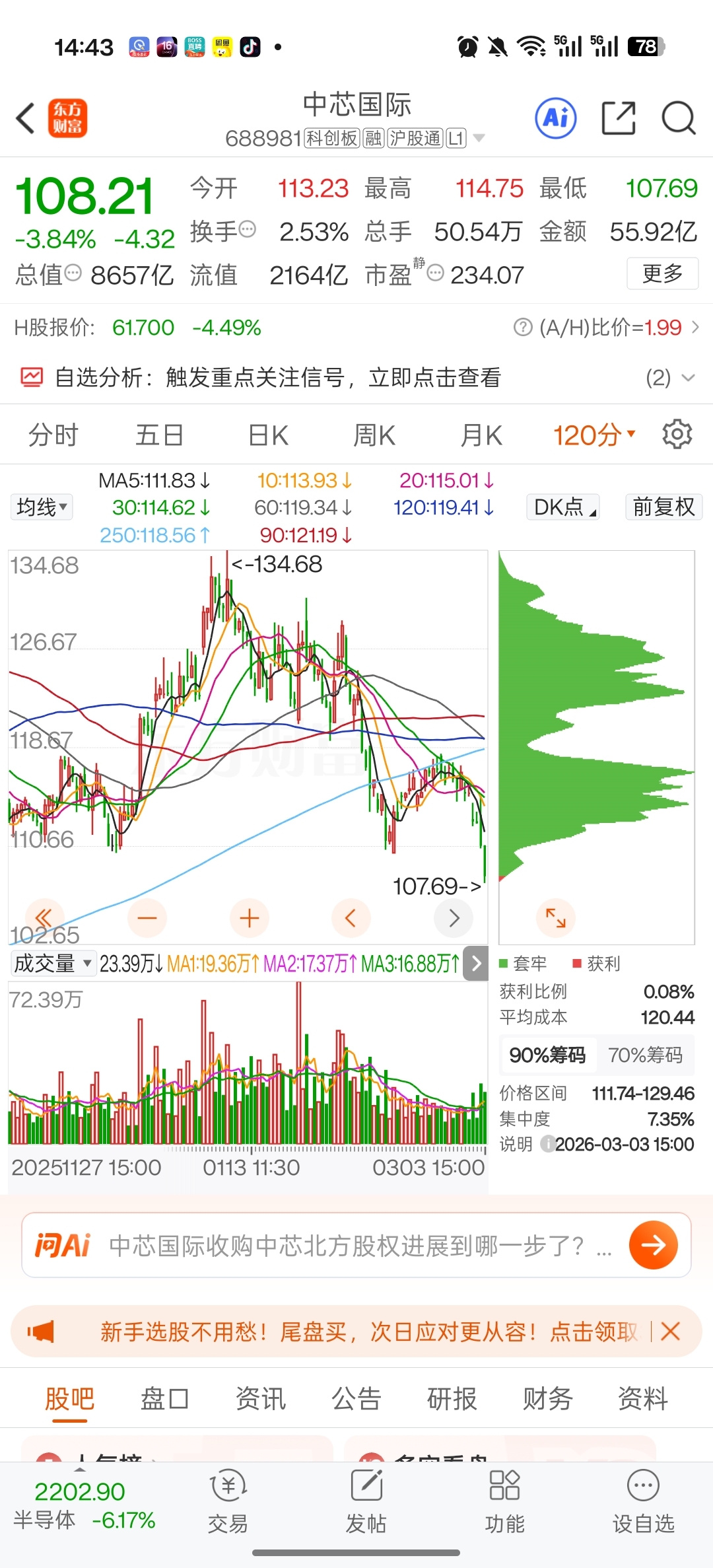 $中芯国际(SH688981)$ 全套牢了?