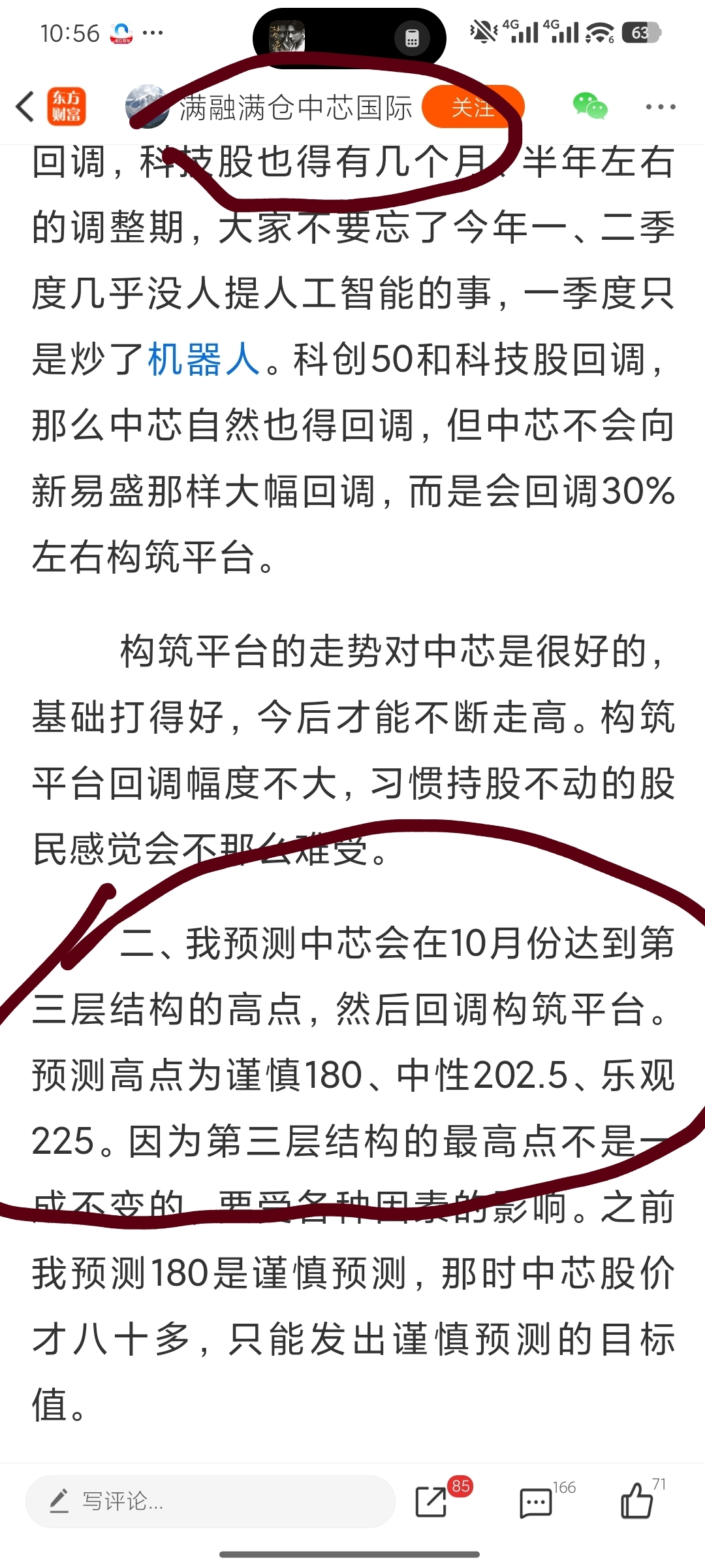 几个月前还信誓旦旦预测中芯会到180,会到225,现在一下子减掉了一半,说要到90多了,哈哈哈哈。