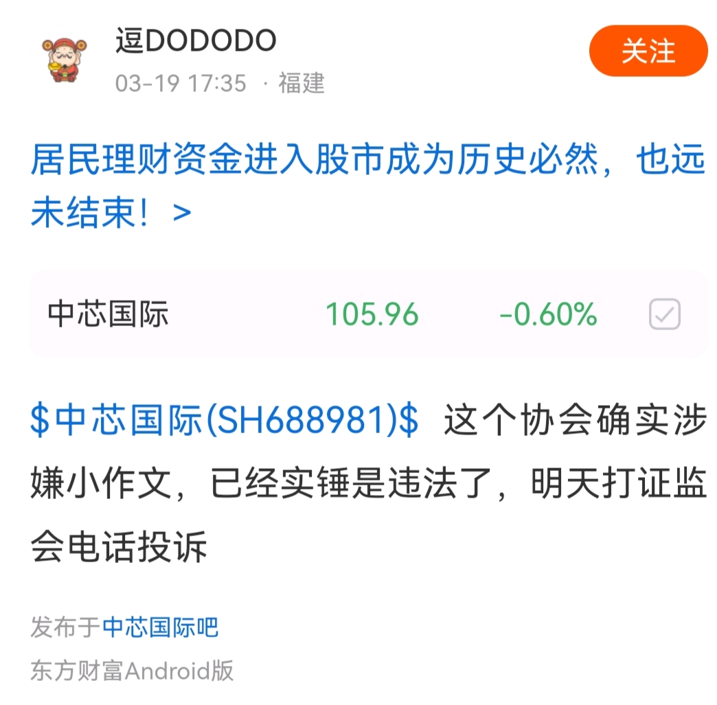 温馨提示: 1.根据《证券法》规定,禁止编造、传播虚假信息或者误导性信息,扰乱证券市场;2.用户在本社区发表的所有资料、言论等仅代表个人观点,与本网站立场无关,不对您构成任何投资建议。用户应基于自己的独立判断,自行决定证券投资并承担相应风险。《东方财富社区管理规定》