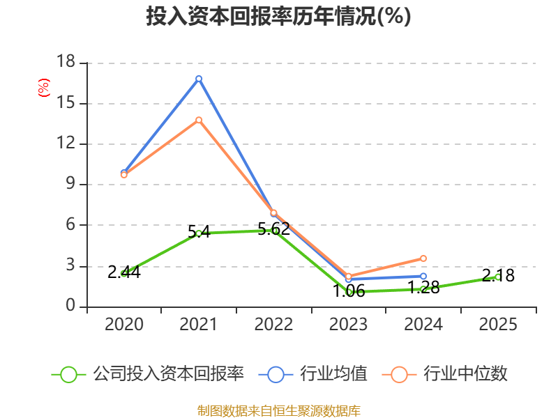 数据显示,2025年公司加权平均净资产收益率为3.4%,较上年同期上升0.9个百分点。公司2025年投入资本回报率为2.18%,较上年同期上升0.9个百分点。