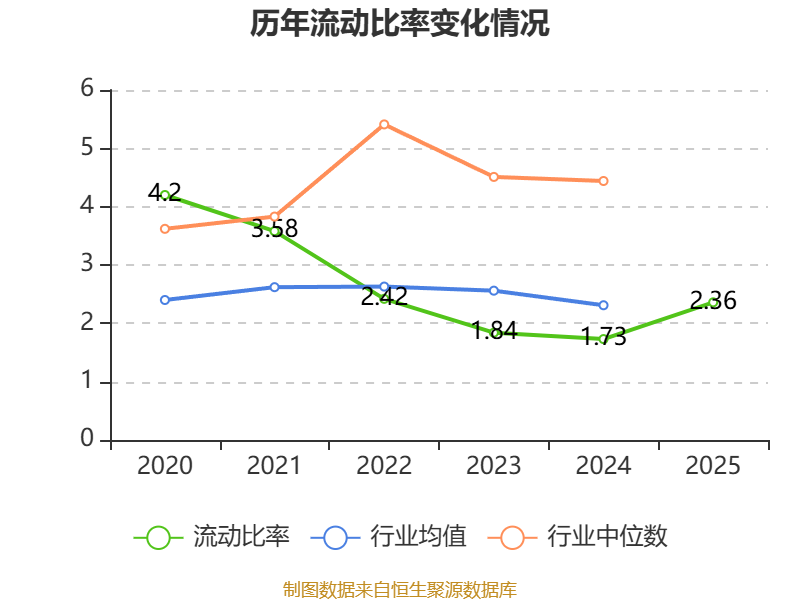 2025年,公司流动比率为2.36,速动比率为1.81。