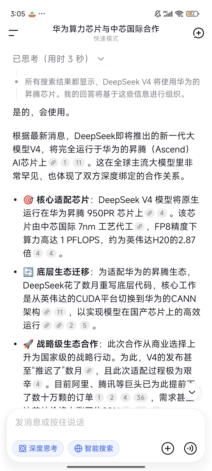 deepseek会用华为的算力芯片,华为的算力芯片由中芯国际代工,韭菜们自己去想