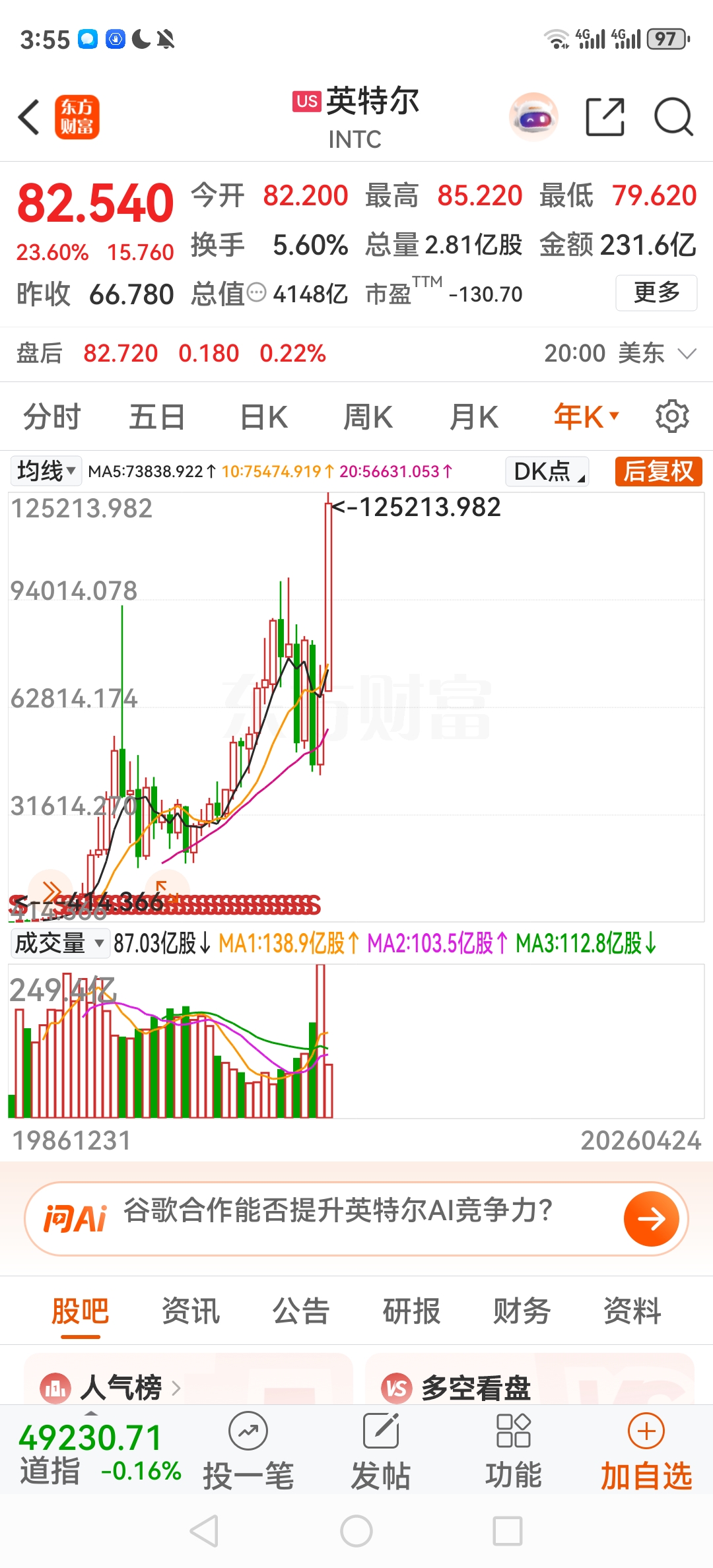 英特尔上周五惊人走势 下周一中芯国际连续涨停吗?4-26