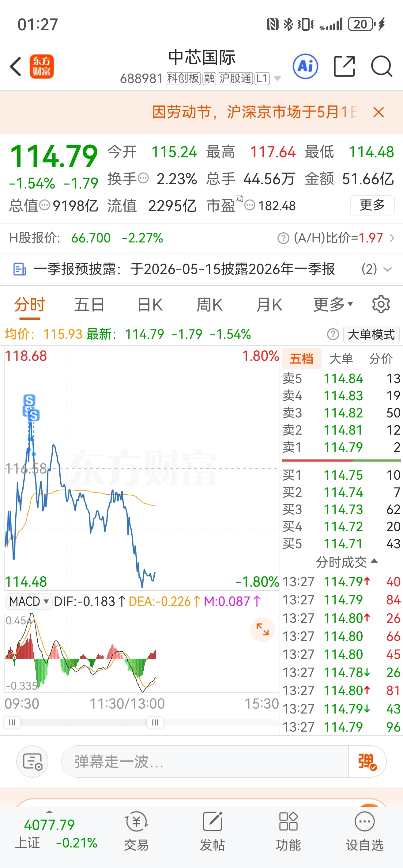 $中芯国际(SH688981)$ 早上已经提醒各位了我砸盘了