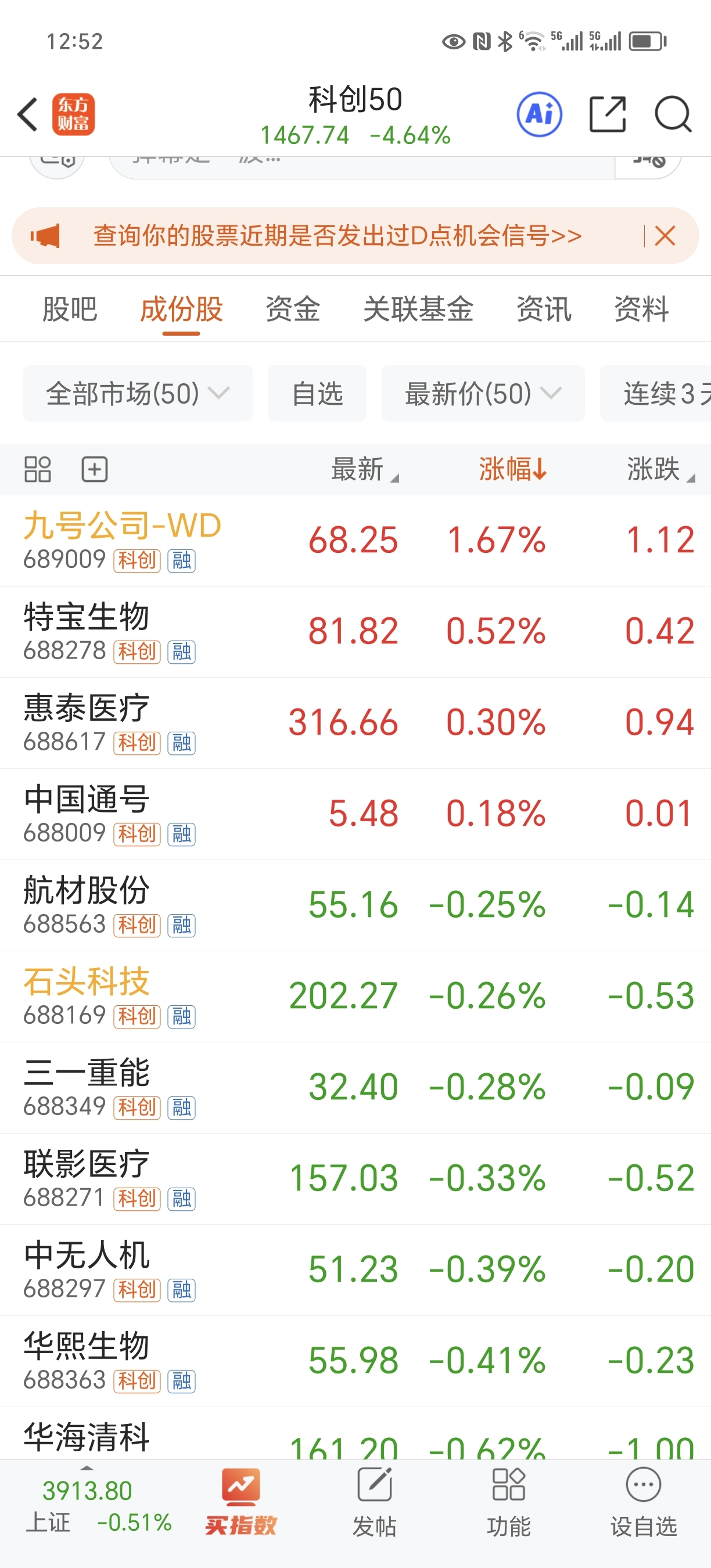 $九号公司-WD(SH689009)$ A50半年多了,终于排第一了