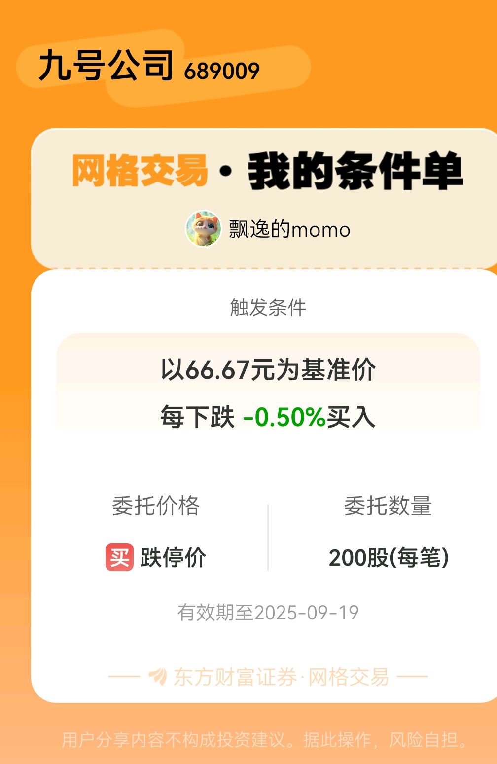#条件单交流# #网格交易晒单# 一位股神设置了一个网格交易条件单,接下来就是见证奇迹的时刻~$九号公司(SH689009)$