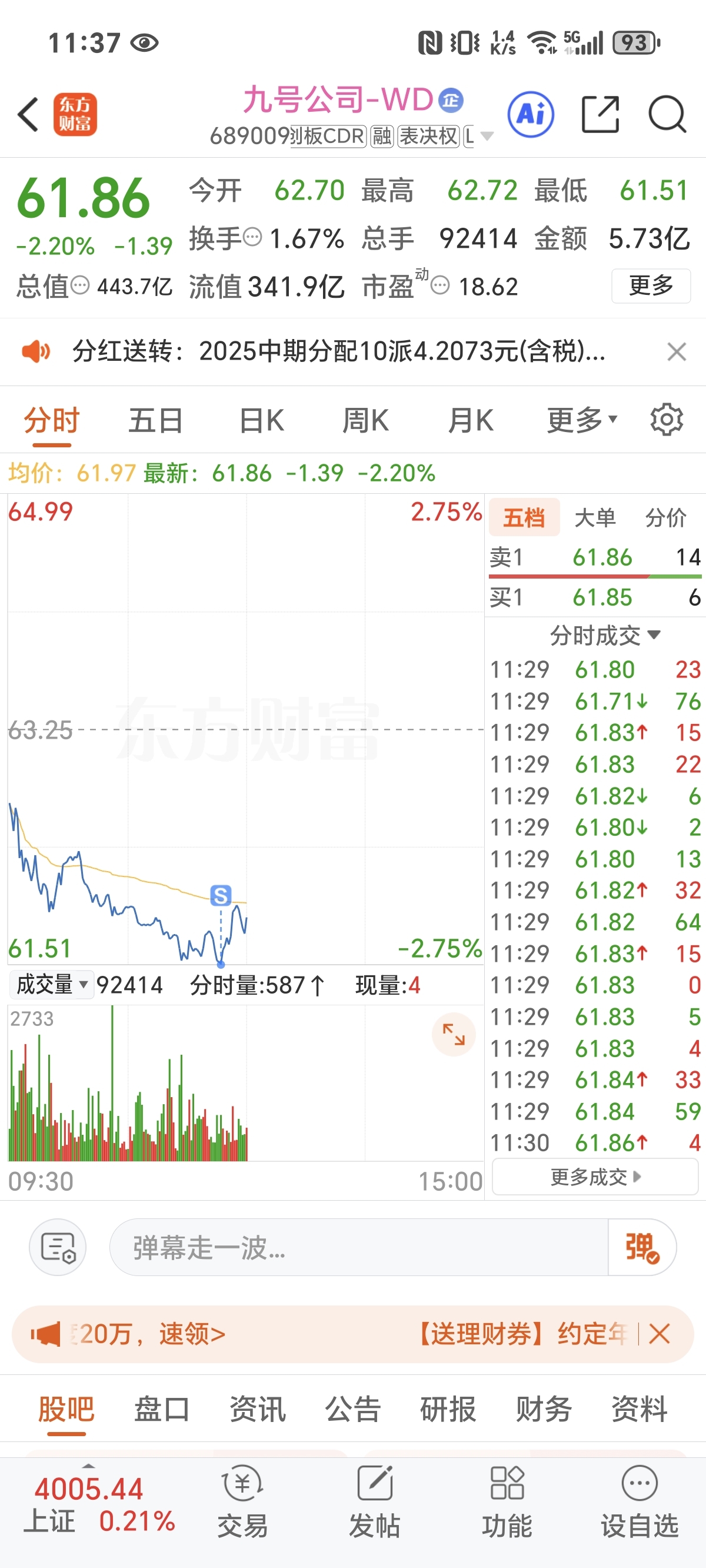 $九号公司-WD(SH689009)$ 我是不是卖在起飞前了?……主力,你终于把我洗下车了,你可以涨了