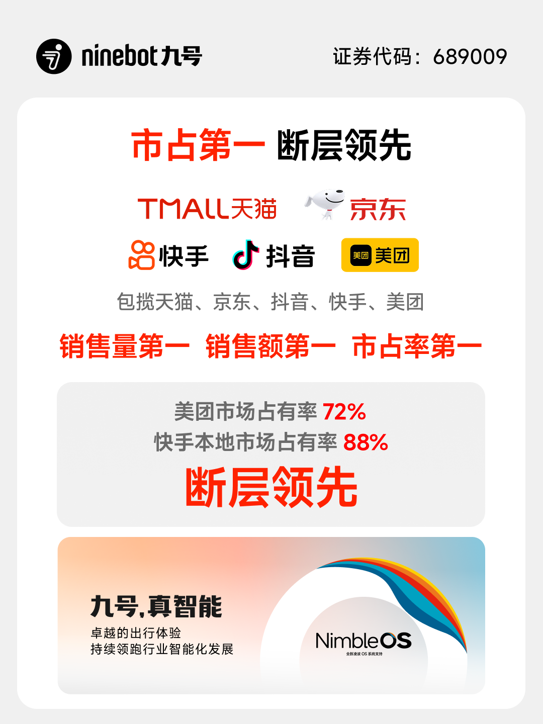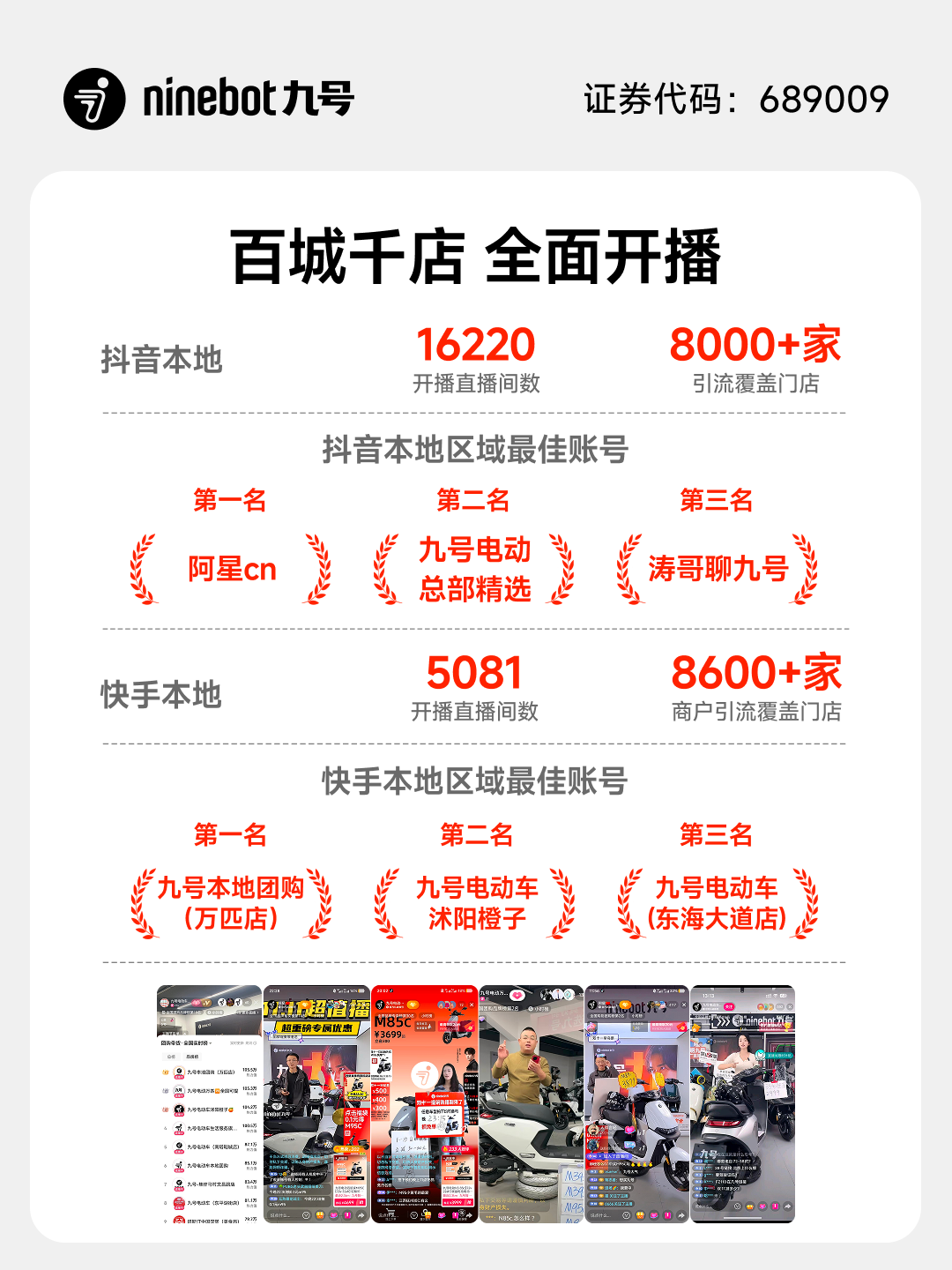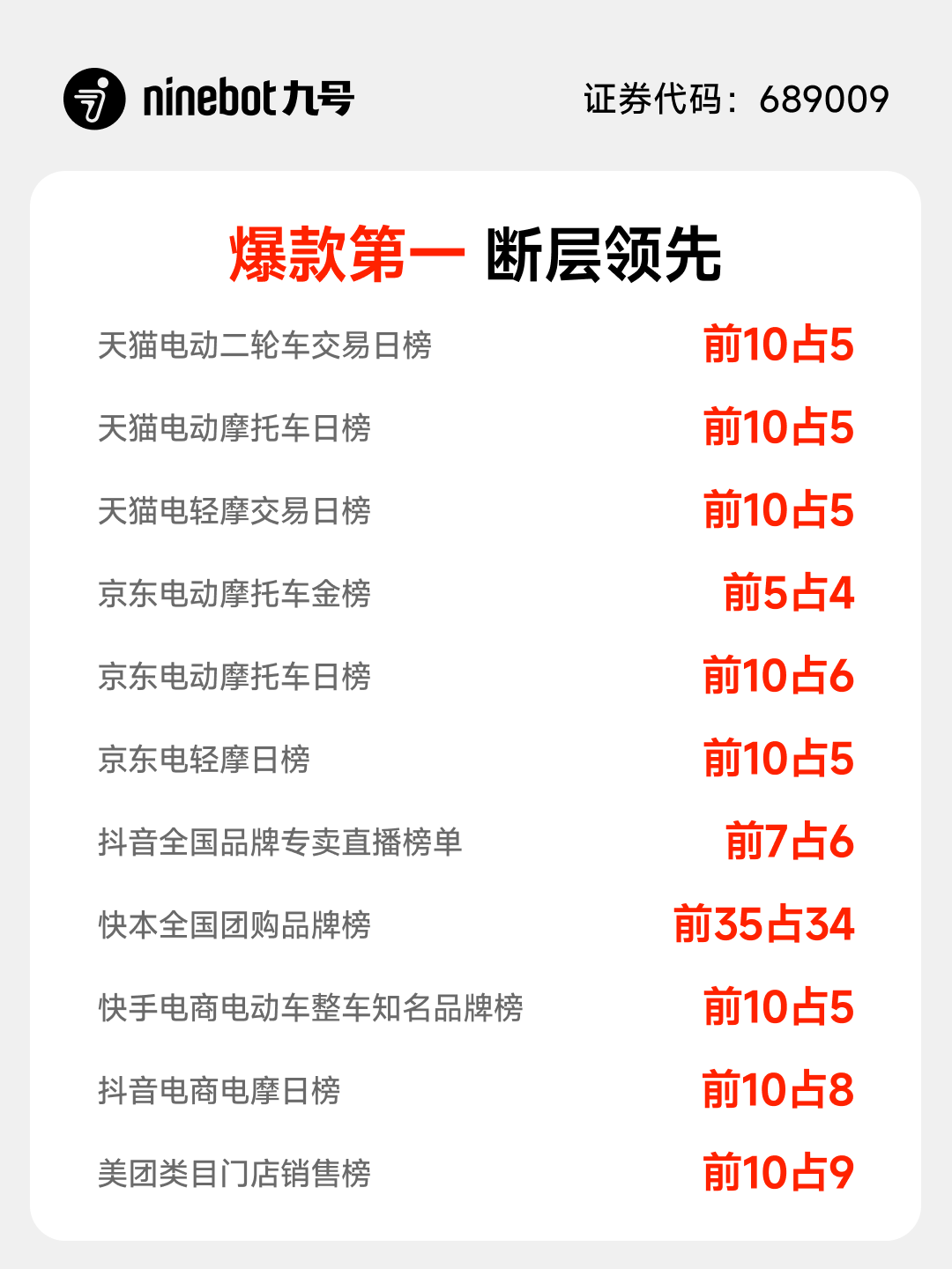 九号真智能电动车自营全渠道销售额突破 15.8 亿(同比增长71%),