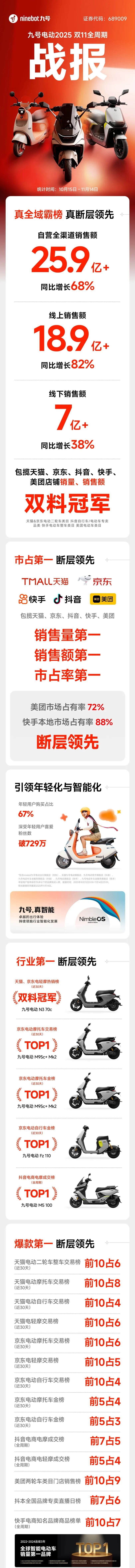 $九号公司-WD(SH689009)$ 双11战报来了 断层领先