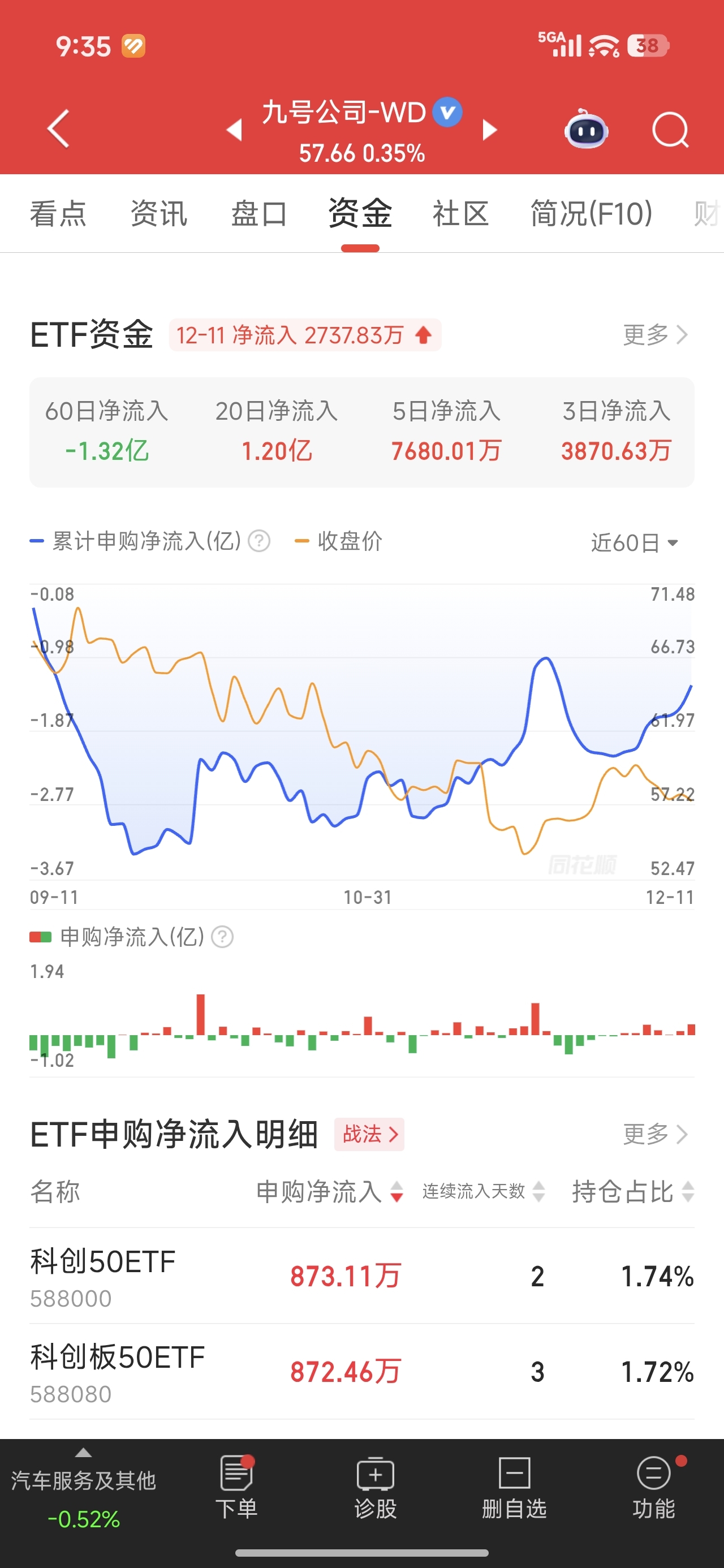 $九号公司-WD(SH689009)$ ETF连续7天加仓