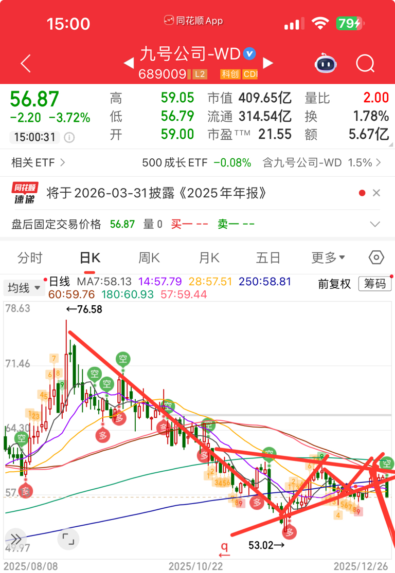 教科书般的“下降收敛三角形”第一目标价50附近第二目标价46附近准备分两笔,两价