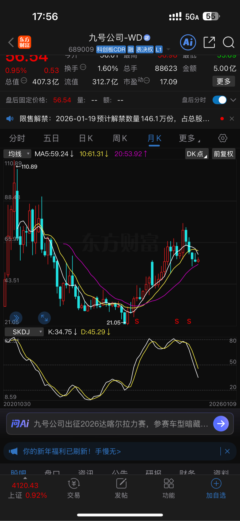 $九号公司-WD(SH689009)$ 散户们,SKDJ白色线到达底部穿越黄色线就是反弹之日!