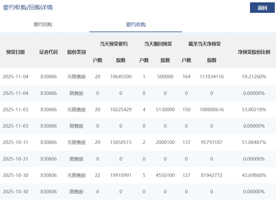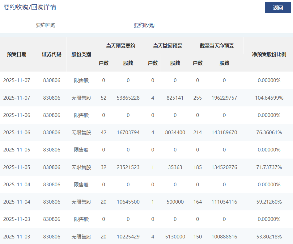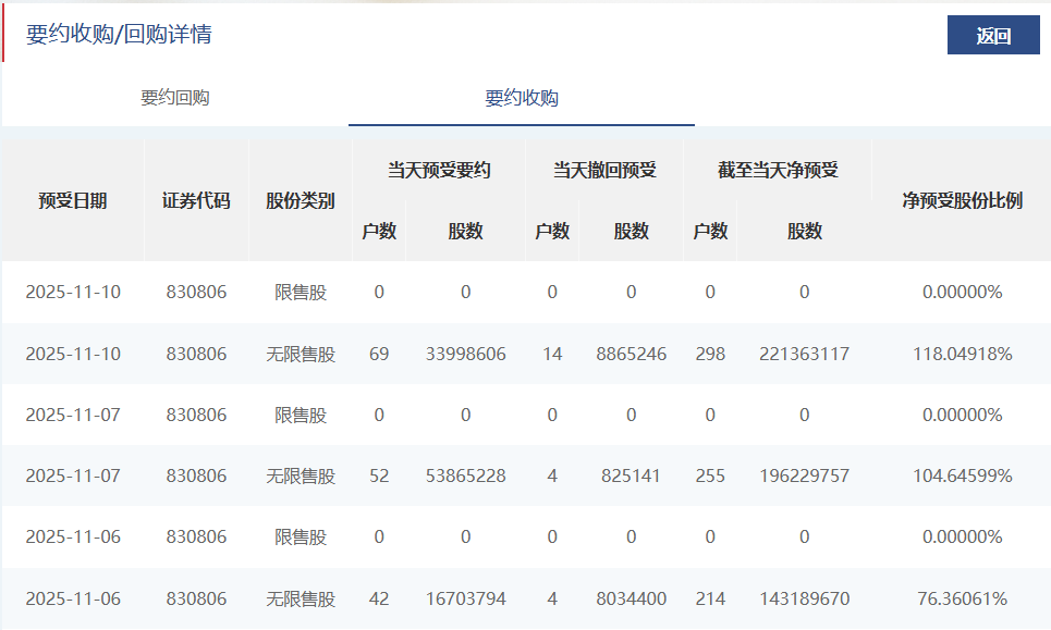 截至11月10日,净预受股份的比例已达118%,距11月12日要约期满还剩2个交易日。