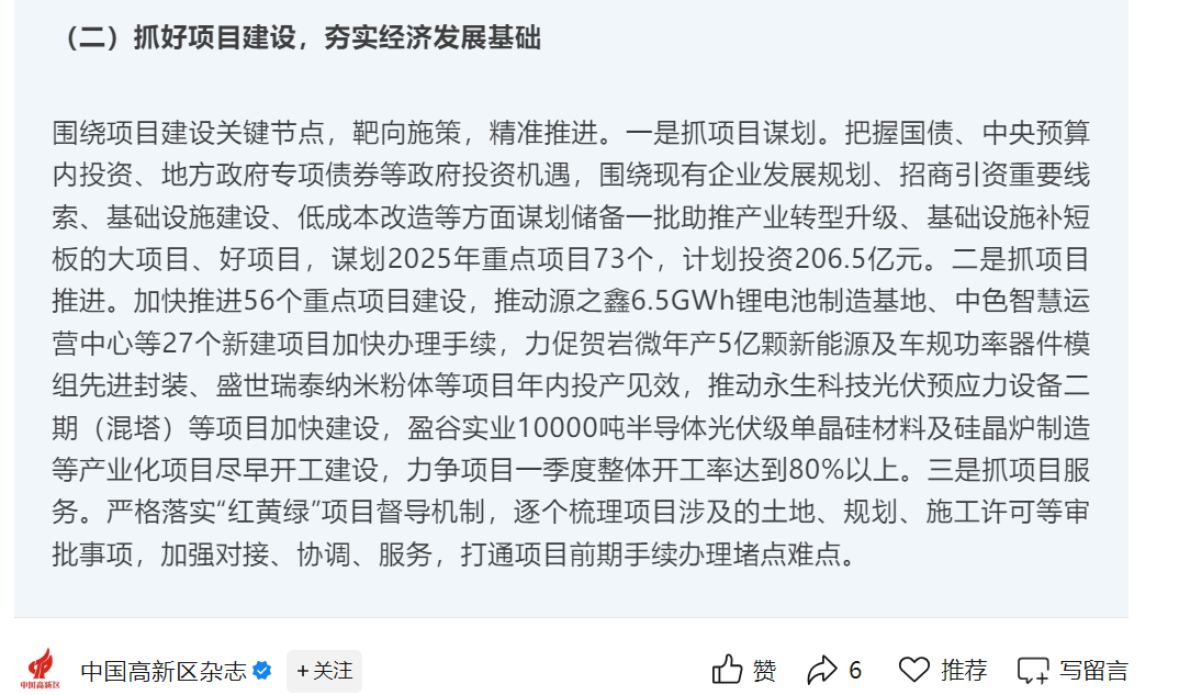 盈谷实业10000吨半导体光伏级单晶硅材料及硅晶炉制造等产业化项目尽早开工建设,力争项目一季度整体开工率达到80%以上。