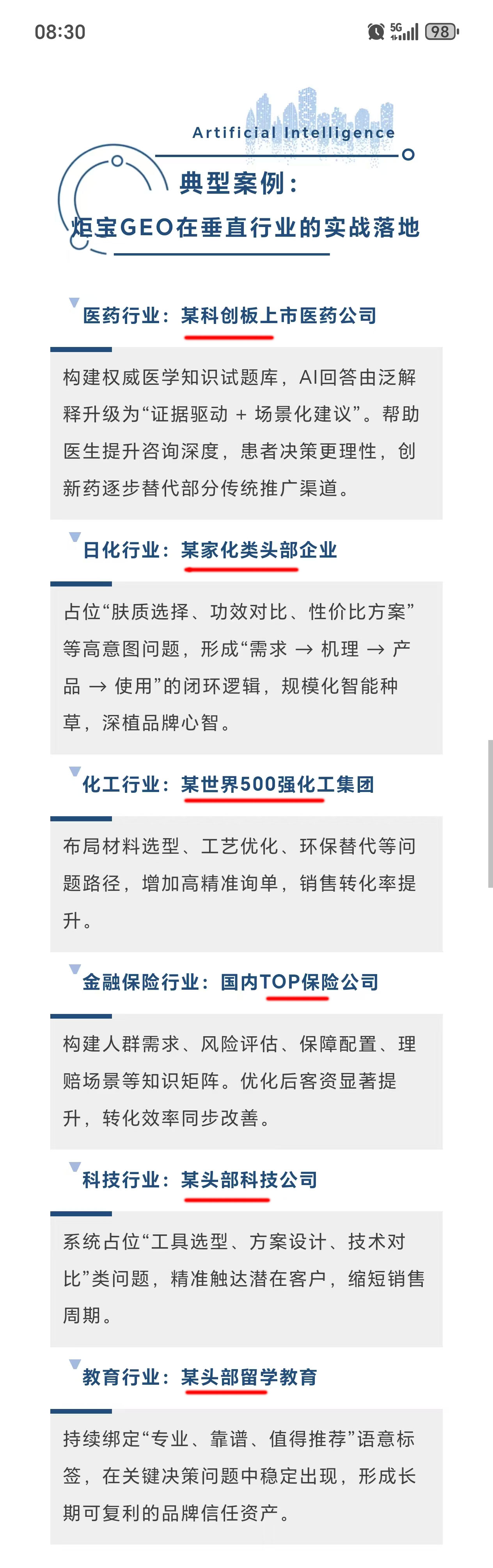 元聚变作为国内领先的GEO智能体营销服务商,旗下的炬宝GEO业务早已深入各行业头