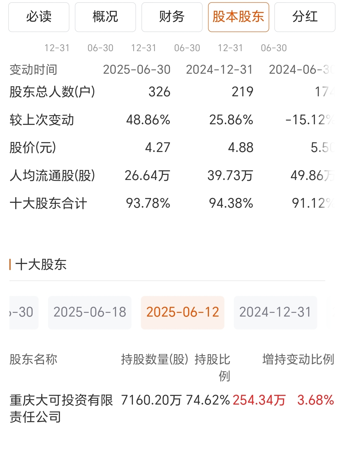 重庆大可投资有限责任公司第一股东连续三次大宗交易买入,均价为4.5元/股,现在持