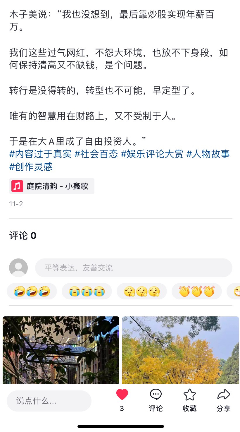 岁数大了,习惯翻些老八卦,一不小心串到木子美,木姐姐原来也是个炒股的人!