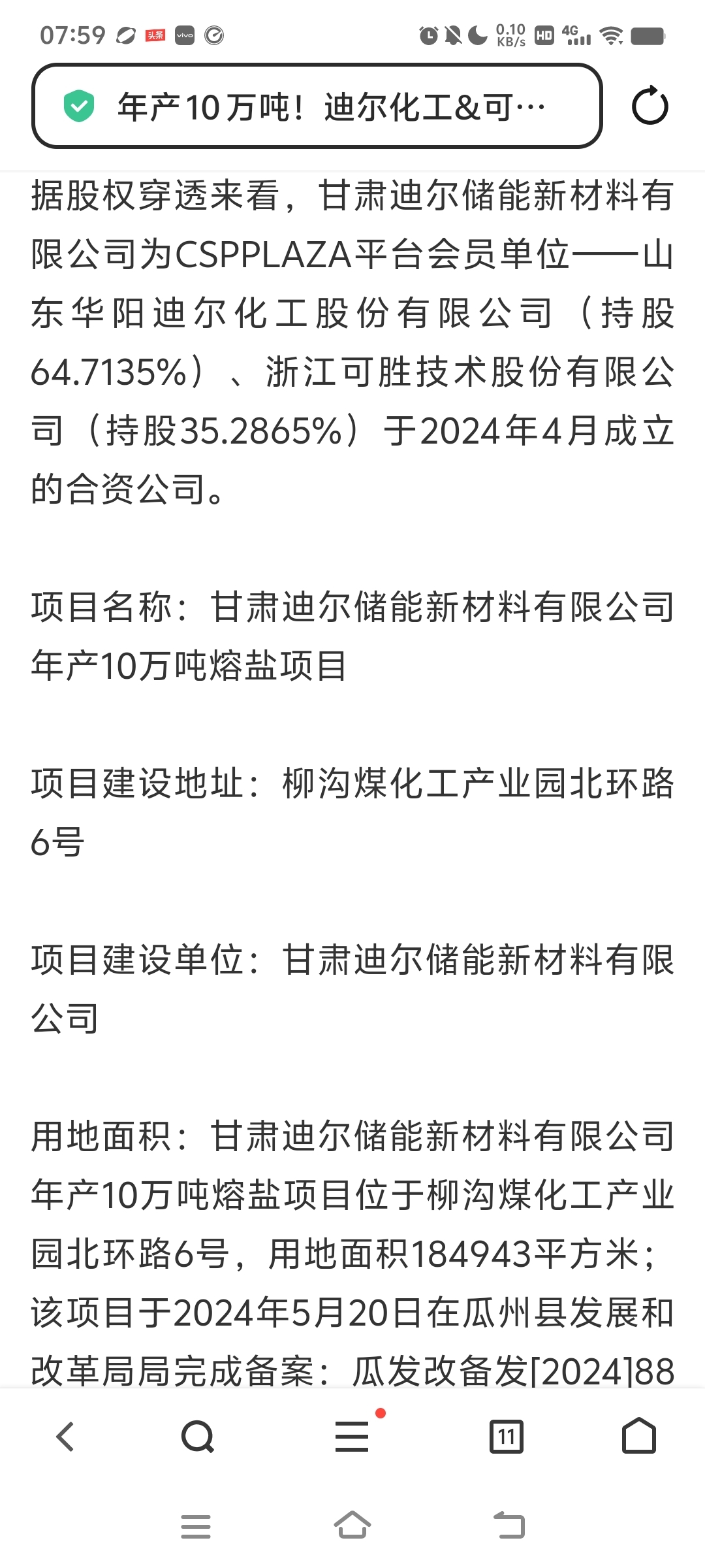 国家镕盐储能项目上了这么多,又连续中标,20万吨新项目明日投产,同控股甘肃迪尔的