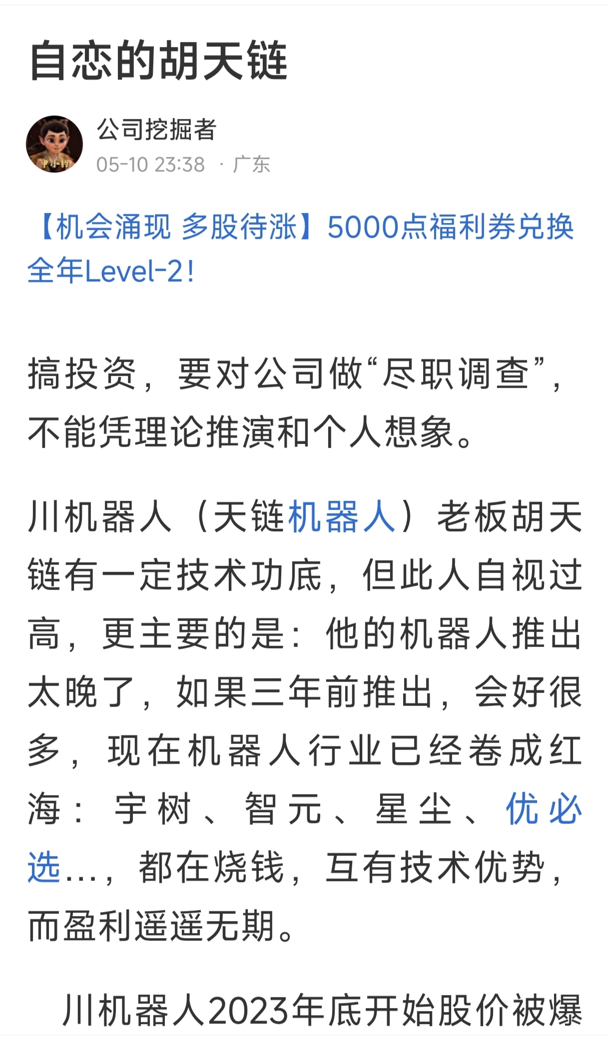 有股友把川机器人与普适导航比较,川机器人融资两年,还没融到。普适导航年利润500