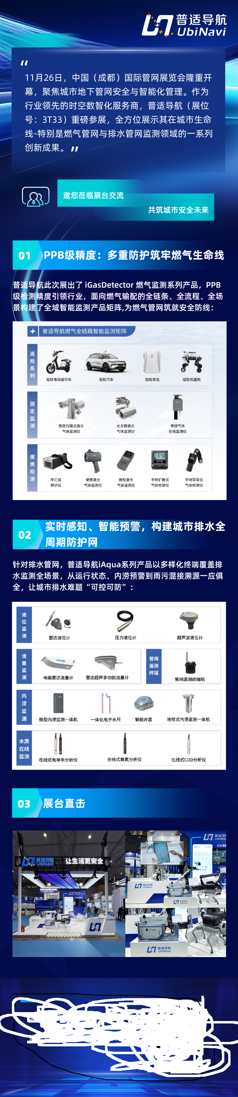 守护城市生命线:普适导航高精度燃气与排水监测解决方案亮相成都管网展