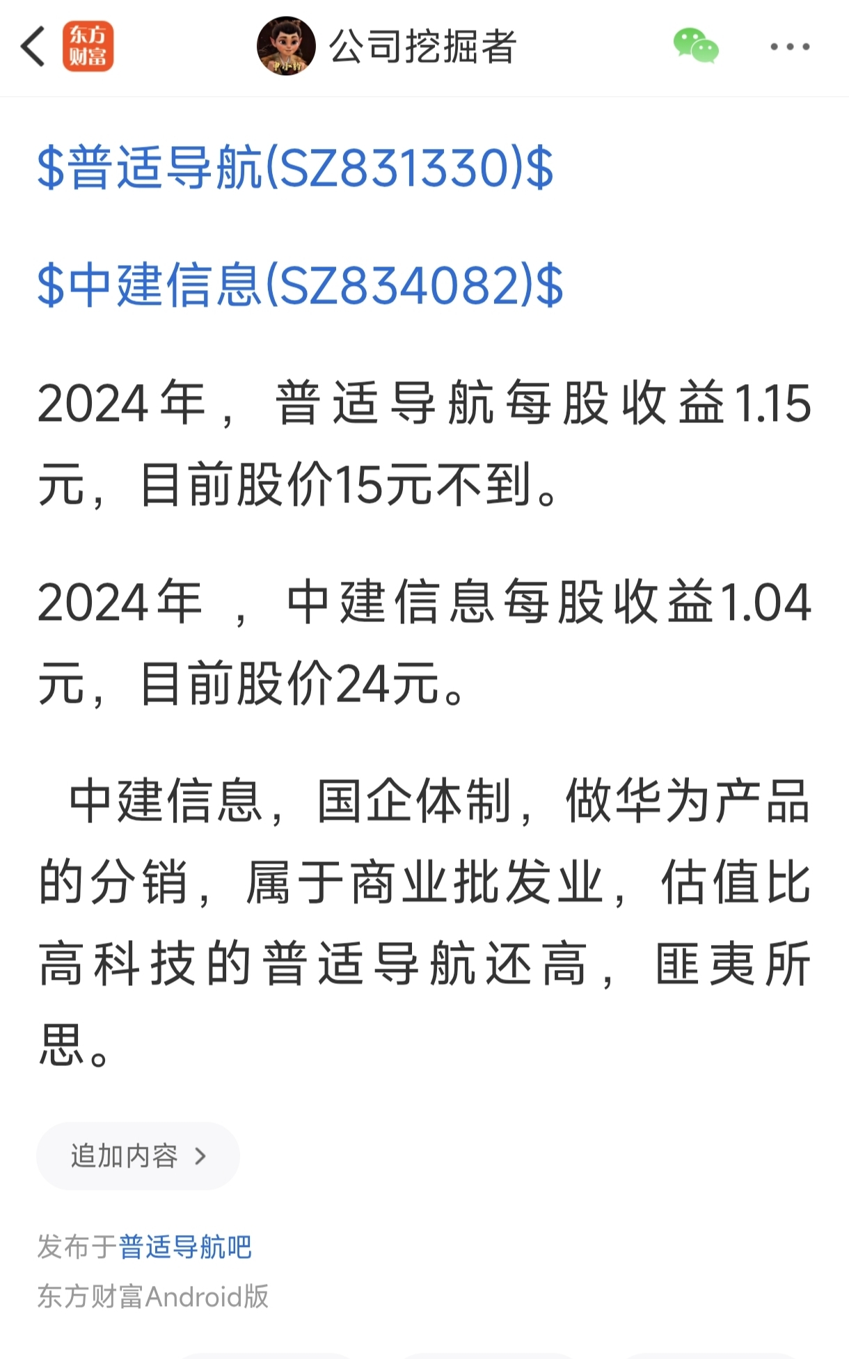 2026年1月12日,普适导航的股价终于超越了中建信息的股价(21.03元)。该