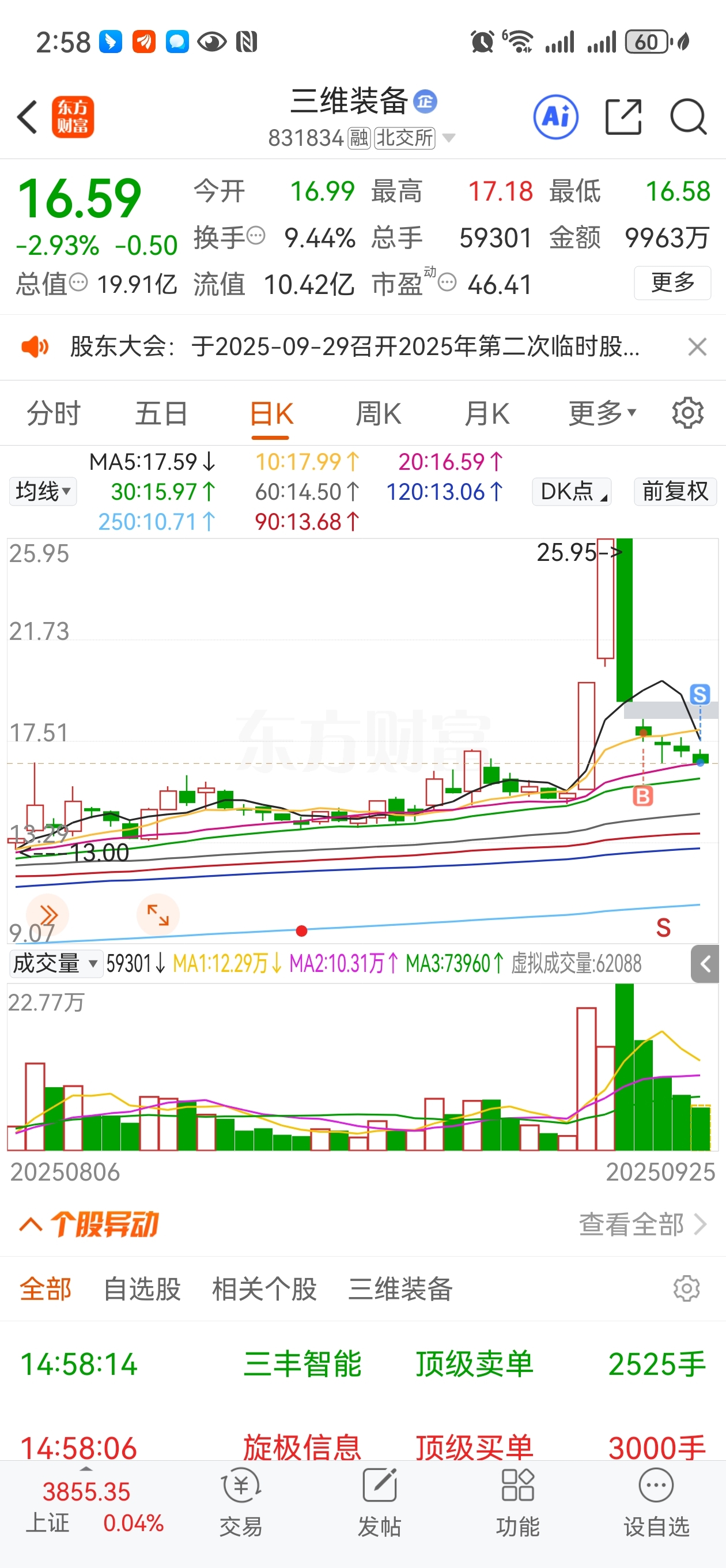 $三维装备(SZ831834)$ 尾盘亏了7个点止损走了,太垃圾,做反弹选了你没去首开。