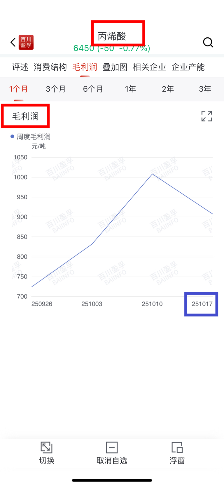 根据百川盈孚数据,截止2025-1-17日,每吨丙烯酸毛利润已经到达900元/吨