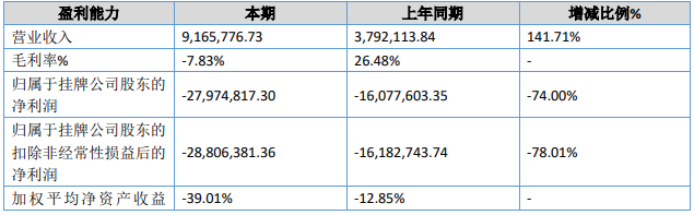 业绩方面,2025年上半年,公司营收916.58万元,同比增长141.71%;净利润亏损2797.48万元,亏损同比扩大74.00%。
