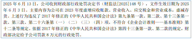 值得注意的是,湘投轻材2025年半年报显示,2025年6月13日,公司收到财政部行政处罚决定书,主要内容为公司在2023年度虚增应收账款、营业收入、应交税金和营业成本,虚减存货。依据相关规定,财政部决定给予公司罚款8万元的行政处罚。