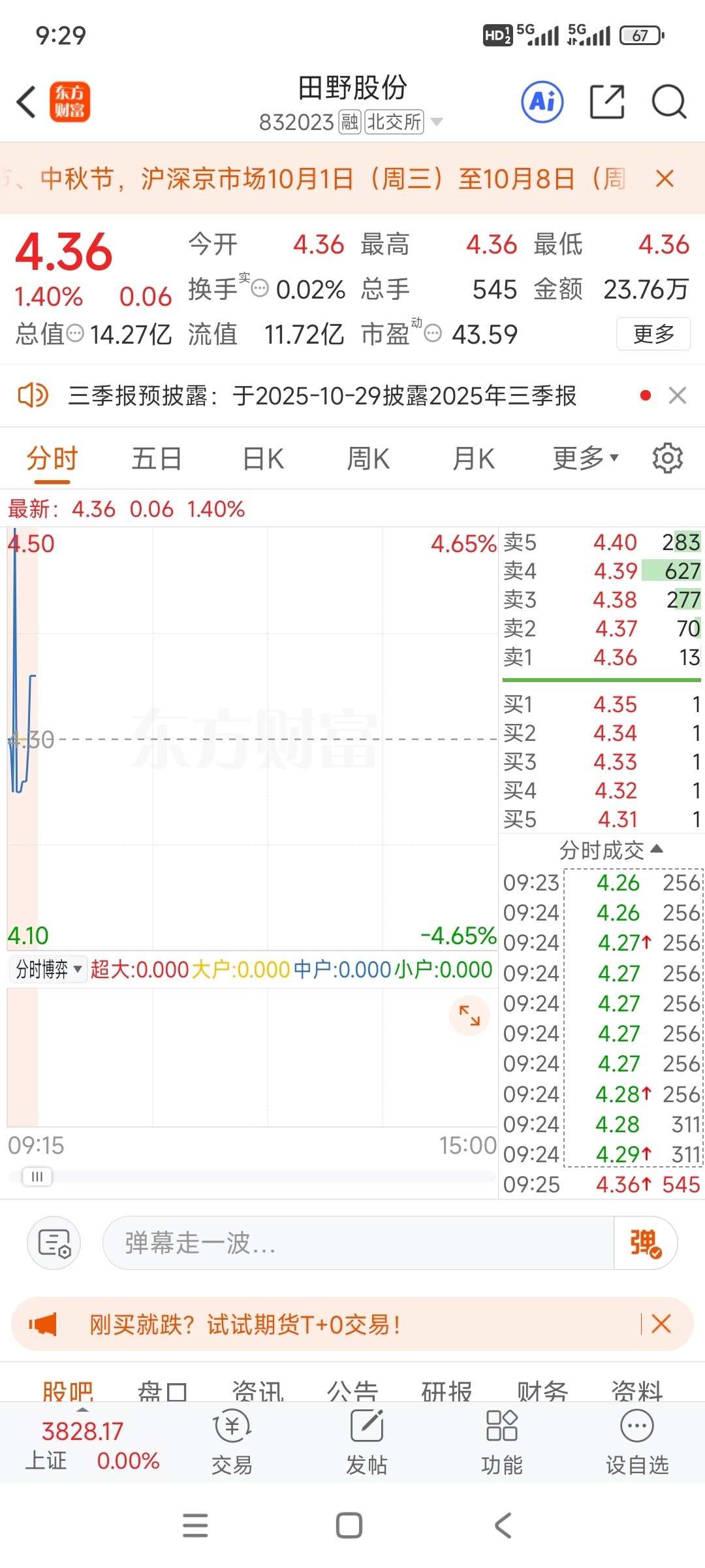 $田野股份(SZ832023)$
