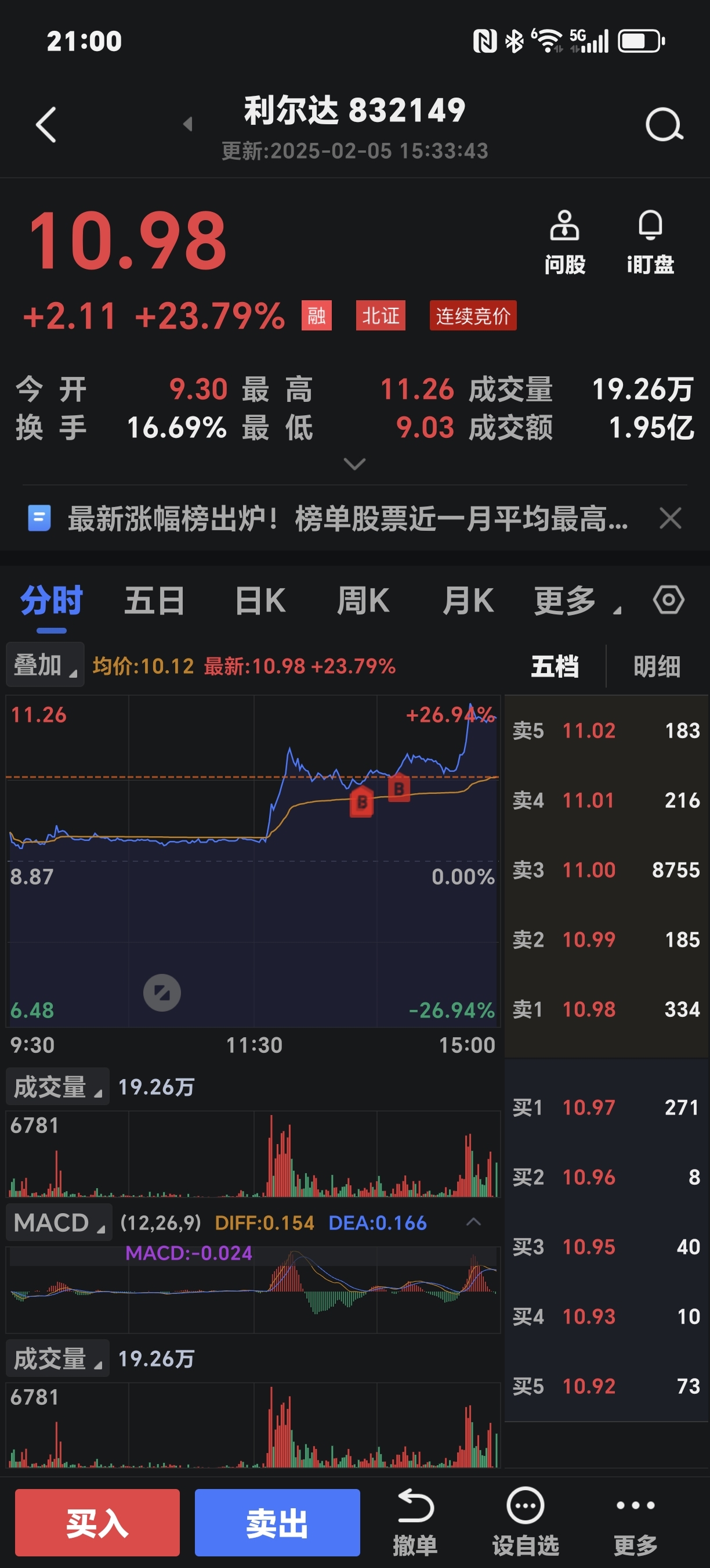$利尔达(SZ832149)$ 倍量突破,必有缘故。