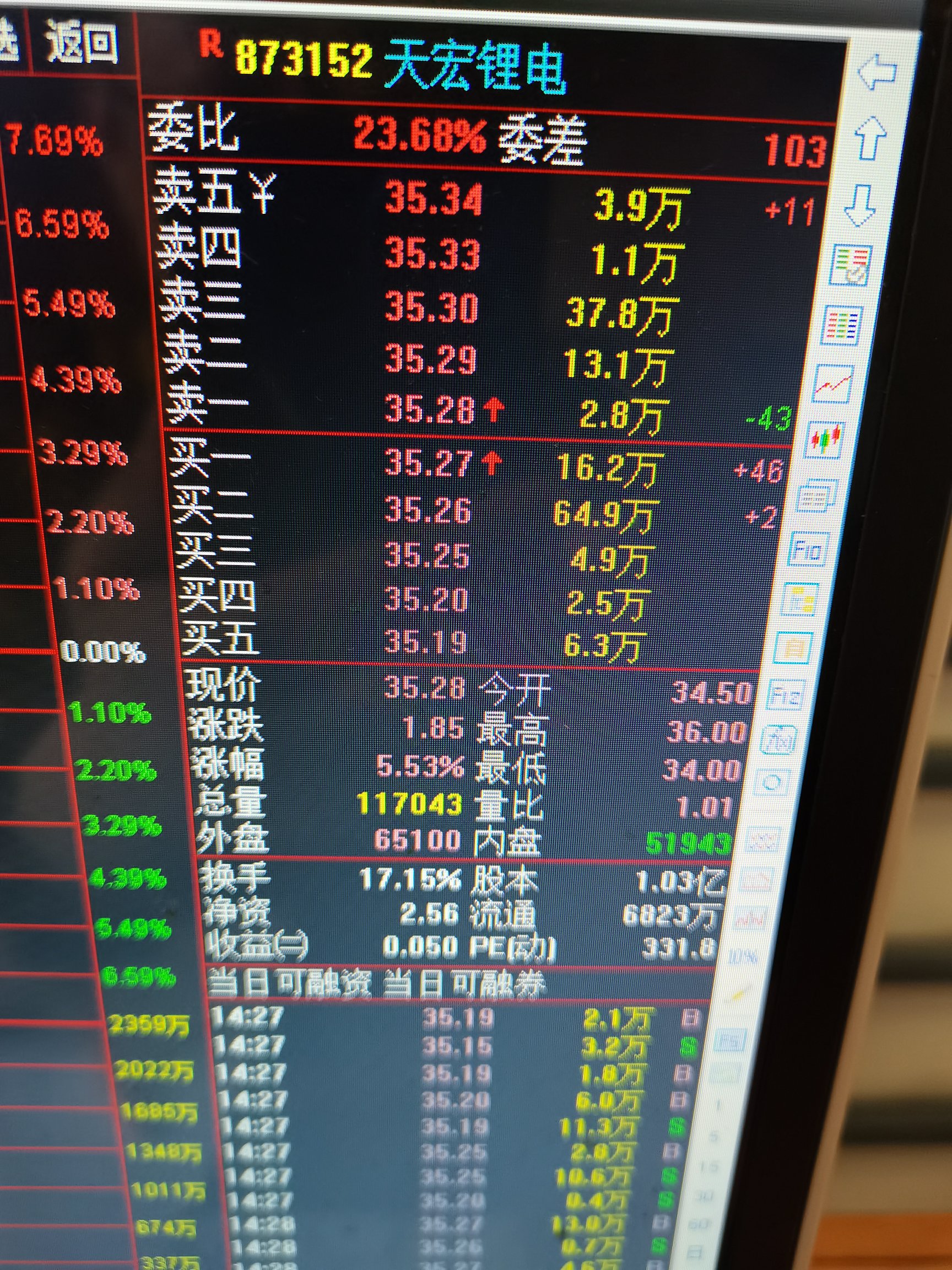 卖了这个废材.,换天宏锂电,净流入资金5千万,涨了近5个点,还有25个点涨幅空间