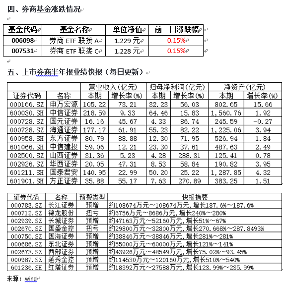 3、券商ETF(SH512000)收盘涨-0.23%,跑赢18只成分股,占比44%。收盘价0.852元,成交额1.5亿元。