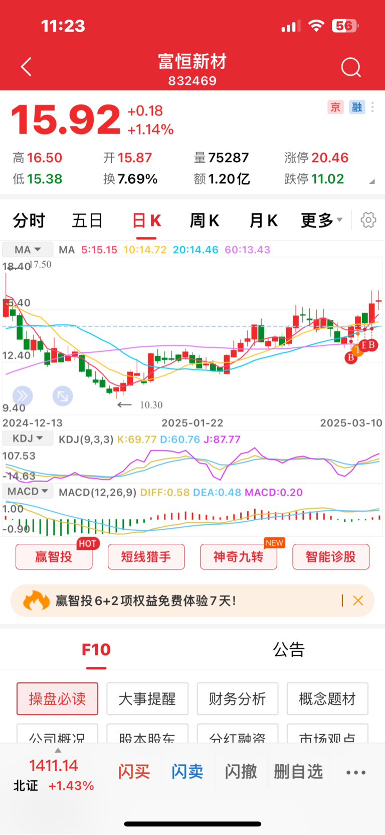$富恒新材(SZ832469)$ 高点没出