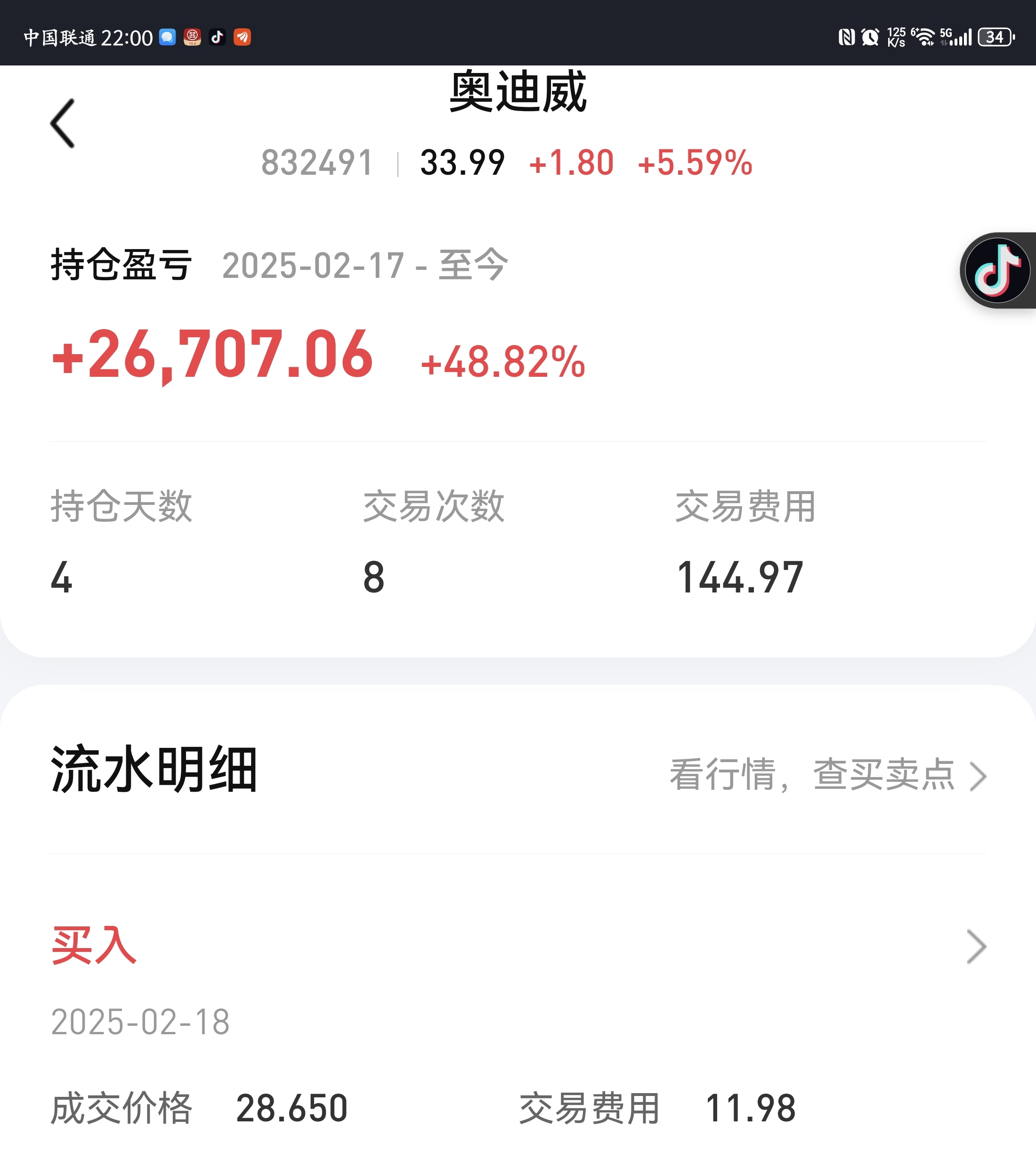 $奥迪威(SZ832491)$ 算了,我看了我做了这么久的T成本只有22块,仓位也不重,就扔这里等他翻倍吧,懒得每天看盘了
