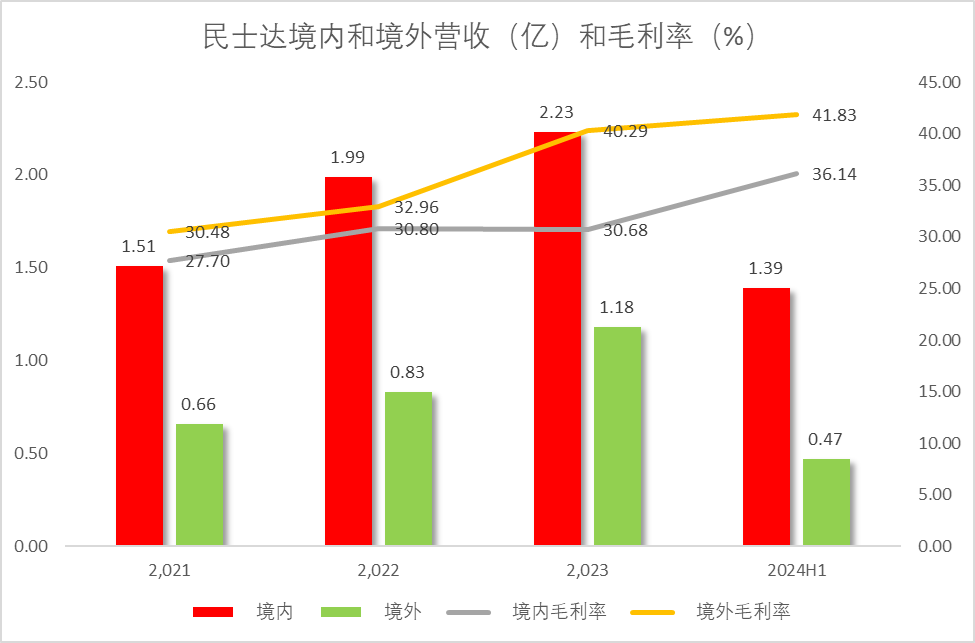 05、民士达早早出海,境外与境内毛利率差缩短