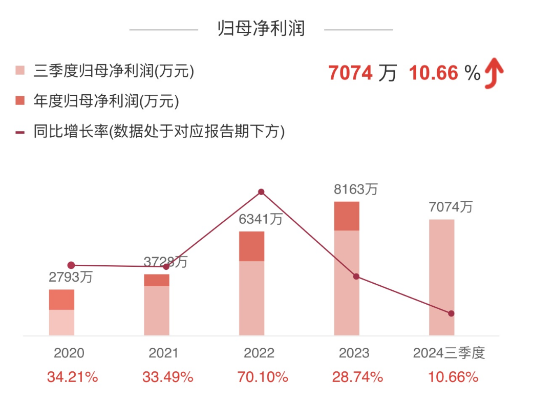 公司的净利润增速也不错,21-23年的CAGR为40.73%,23年同比增长28.74%,净利润0.81亿,24年中同比增长10.66%,净利润为0.7074亿。
