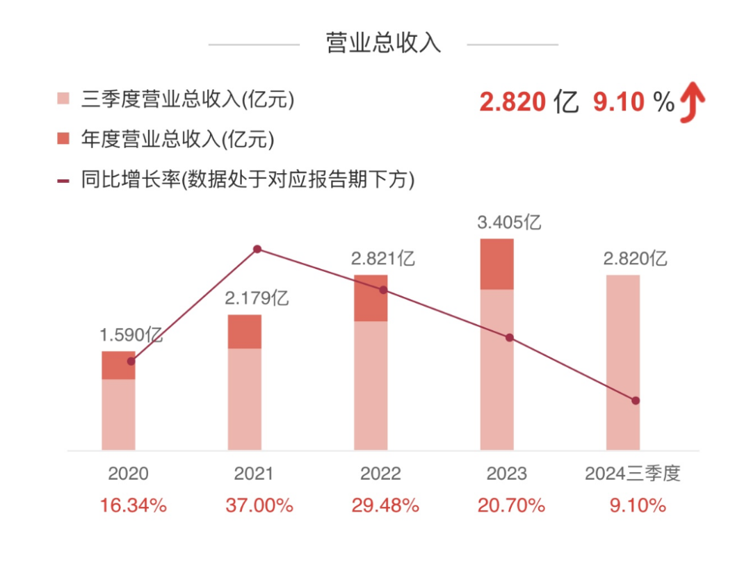 2024年中的营收增速为9.1%,下降比较明显。