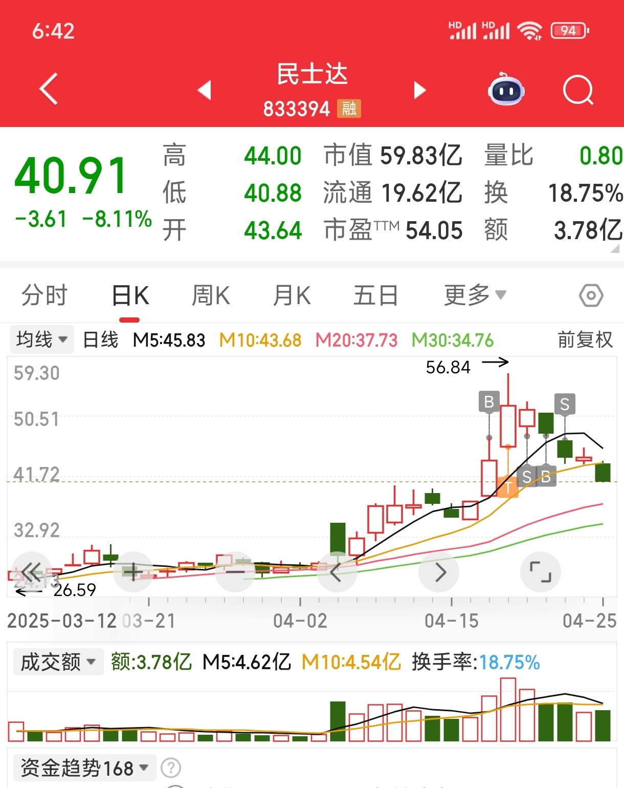 $民士达(SZ833394)$ 永远永远不要追高。昨天去黄金的资金都埋了,我就看着一点也不心动。不过俺低吸的这个也一样吃面,找谁哭去