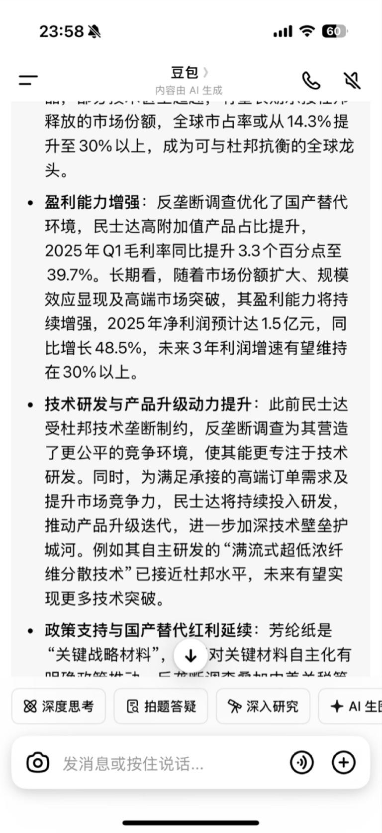 豆包预估民士达2025年盈利增长48.5%,现在的无脑打压恶庄在操纵市场!