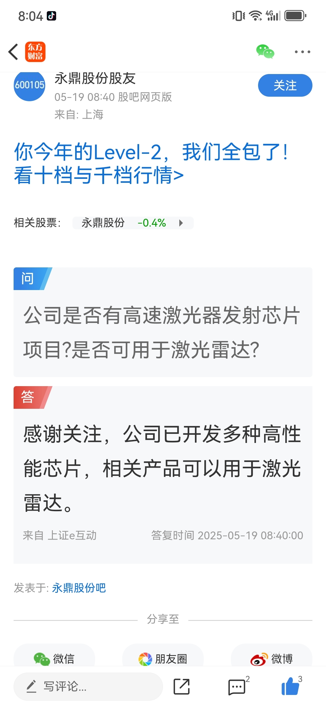 温馨提示: 1.根据《证券法》规定,禁止编造、传播虚假信息或者误导性信息,扰乱证券市场;2.用户在本社区发表的所有资料、言论等仅代表个人观点,与本网站立场无关,不对您构成任何投资建议。用户应基于自己的独立判断,自行决定证券投资并承担相应风险。《东方财富社区管理规定》