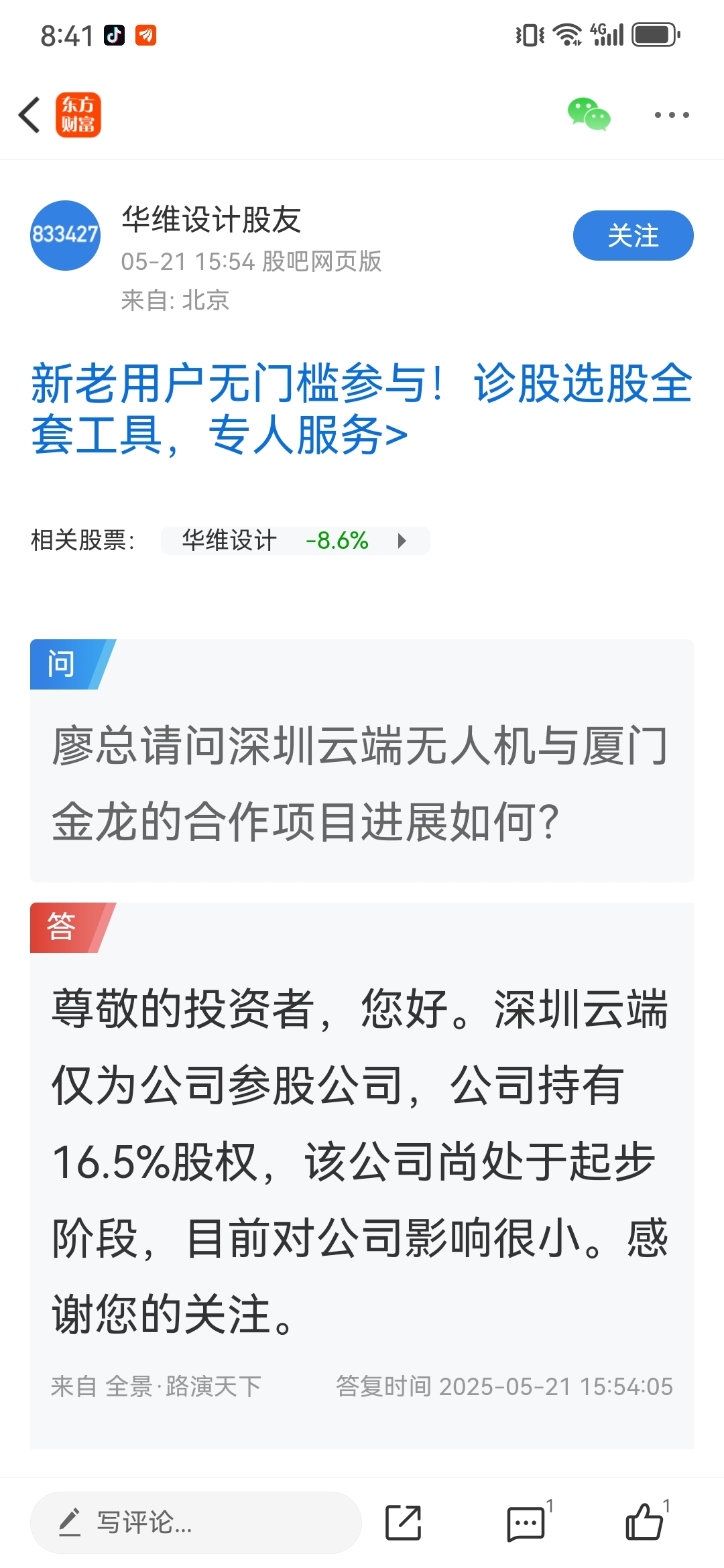 郑重声明:用户在财富号/股吧/博客等社区发表的所有信息(包括但不限于文字、视频、音频、数据及图表)仅代表个人观点,与本网站立场无关,不对您构成任何投资建议,据此操作风险自担。请勿相信代客理财、免费荐股和炒股培训等宣传内容,远离非法证券活动。请勿添加发言用户的手机号码、公众号、微博、微信及QQ等信息,谨防上当受骗!