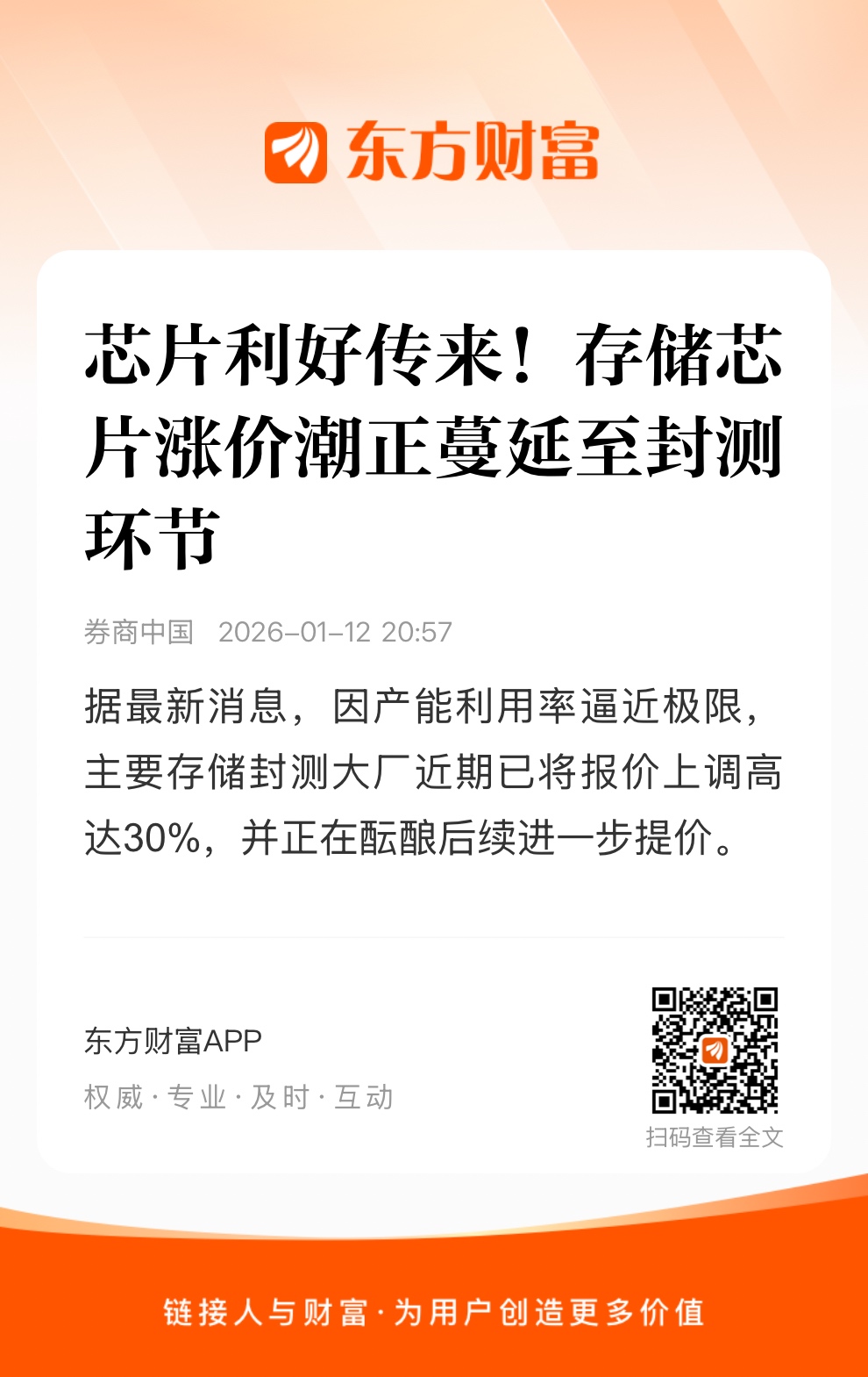 当前,存储芯片涨价潮正蔓延至封测环节。据最新消息,因产能利用率逼近极限,主要存储封测大厂近期已将报价上调高达30%,并正在酝酿后续进一步提价。