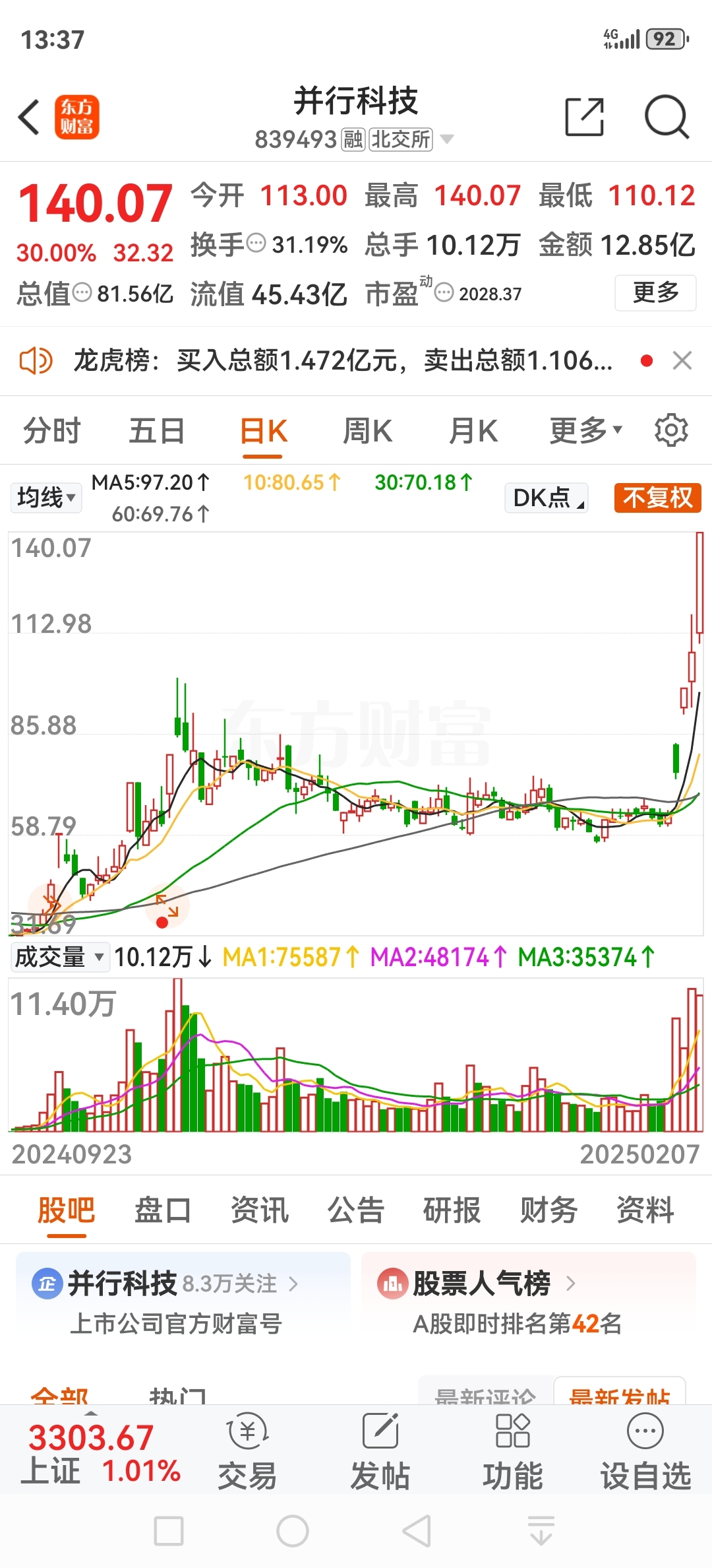 并行市盈率已是2028倍,人形机器人龙头骏创只有72倍,那个更有上升空间
