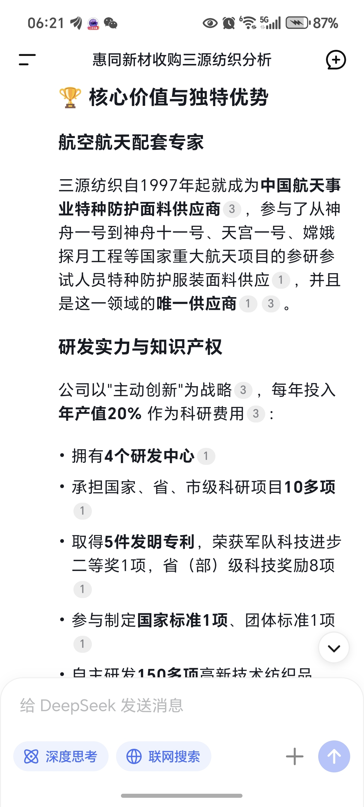 公司在防护服装产业链、供应链中扮演着纱线生产商、布料生产商、服装生产商等多角色。为特种服装生产龙头企业提供功能纱线及面料等配套产品,目前主攻机器人柔性电子皮肤!