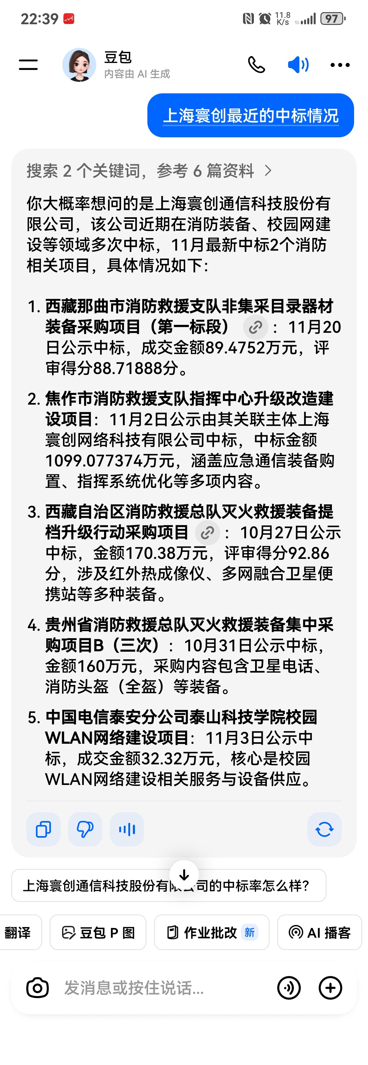 $上海寰创(SZ833768)$ 根据最近的中标情况看进入到各地的消防系统里面